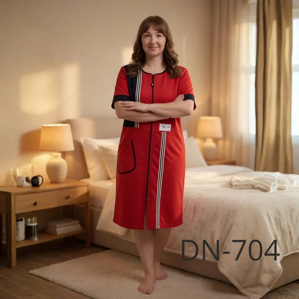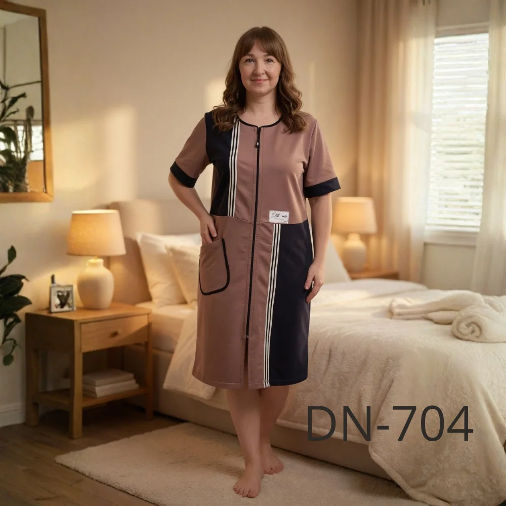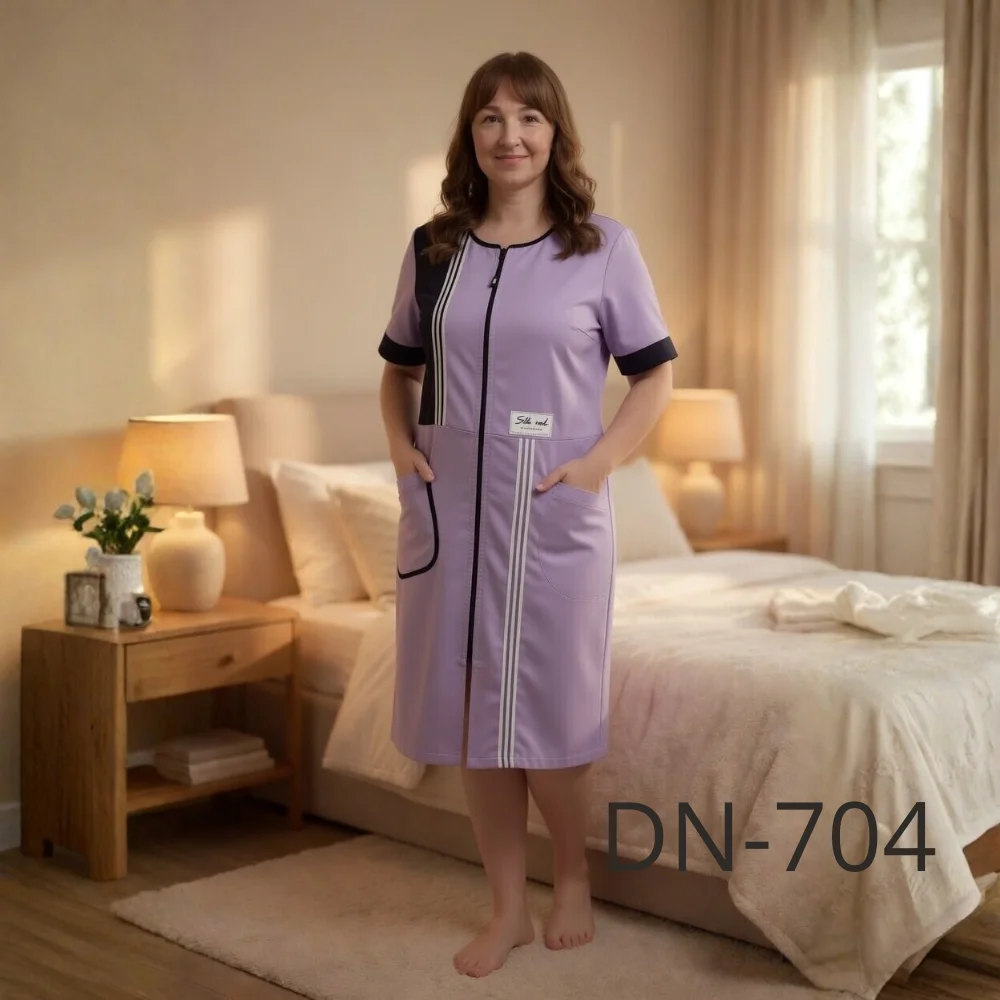 Жіноча сукня-халат “Urban Comfort Line” — це універсальна модель, яка поєднує комфорт домашнього одягу та сучасний міський стиль. Ідеально підходить як для дому, так і для щоденних справ.