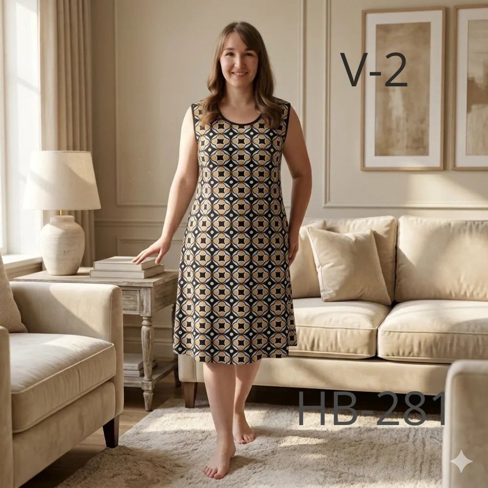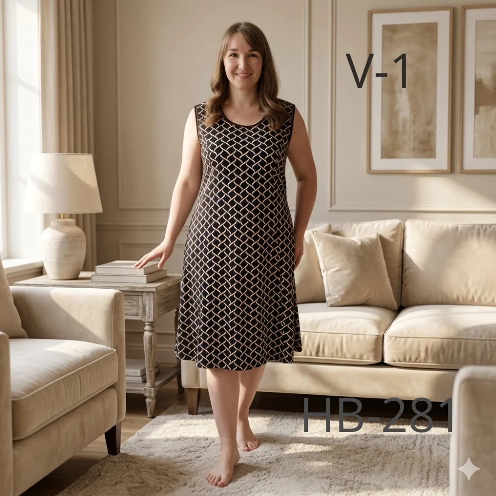 Сукня має зручний фасон без зайвих деталей, що робить її універсальною для дому, відпочинку або повсякденного носіння. Легка тканина не парить у теплу пору року, добре переносить прання та довго зберігає форму.