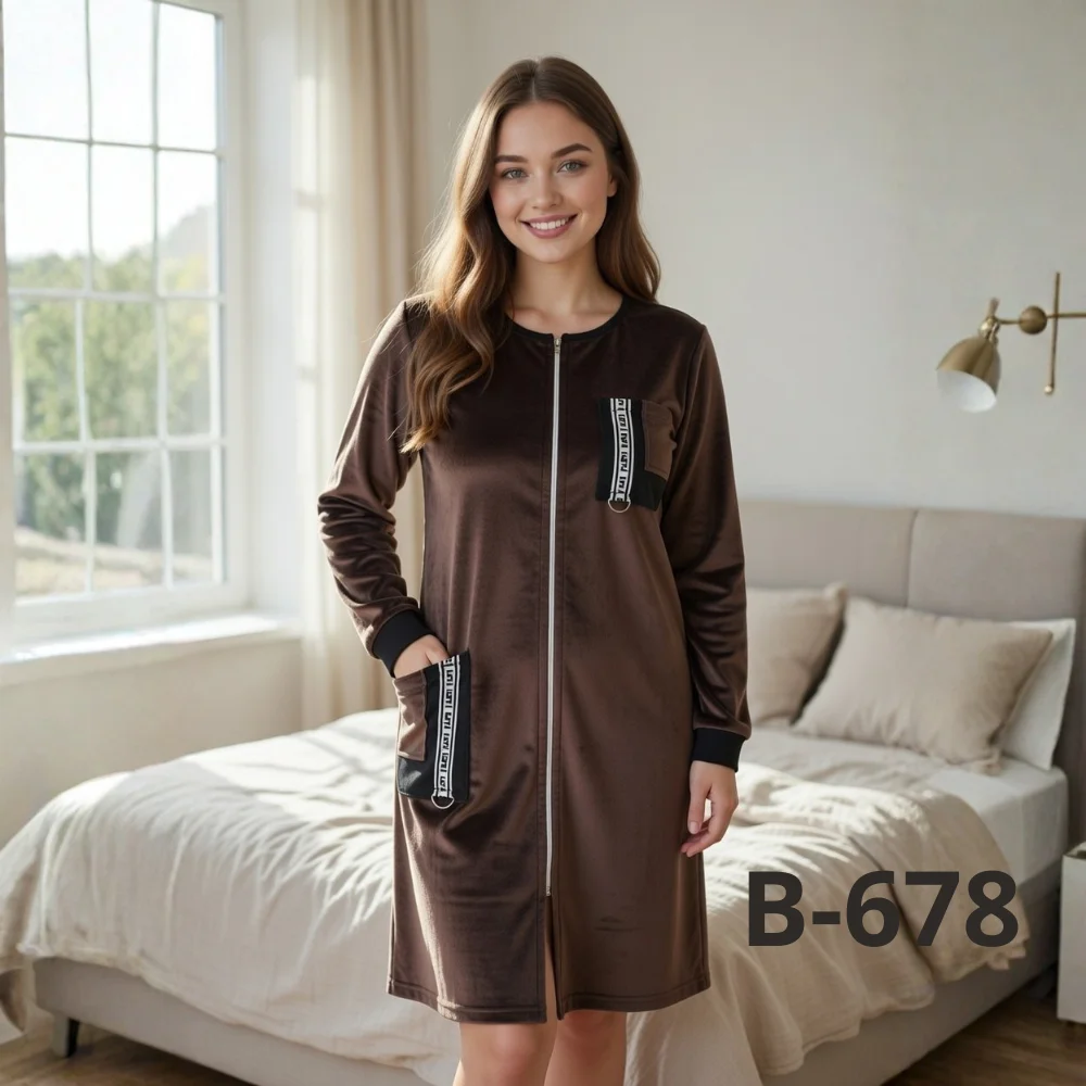 “Velour Charm” — це домашній халат, що поєднує розкіш велюру, сучасний дизайн та максимальний комфорт.