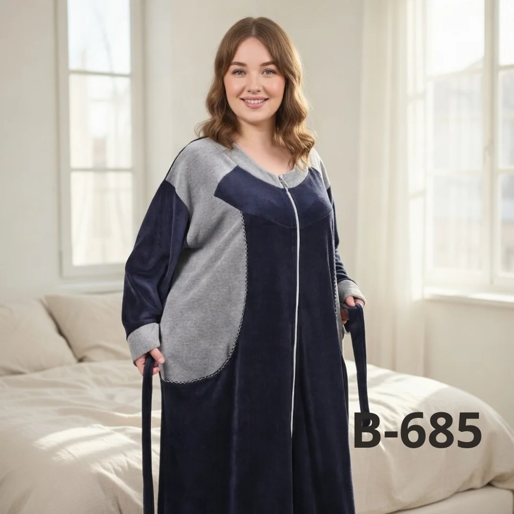 Жіночий халат з велюру батал “Velour Elegance Plus Size” — це ідеальний вибір для жінок з пишними формами, які прагнуть поєднати комфорт, функціональність і вишуканий стиль. Тканина турецького виробництва має м’яку структуру, приємну на дотик поверхню та благородний блиск, що робить цей халат особливо затишним і красивим. Велюр відомий своєю довговічністю, зберігає форму і насиченість кольорів навіть після багаторазових прань.